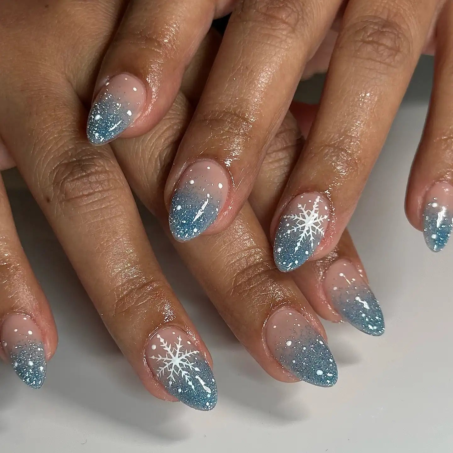 Handmade Winter Snowflake Blue Glitter Ombre Festive Press on Nails B02