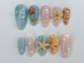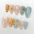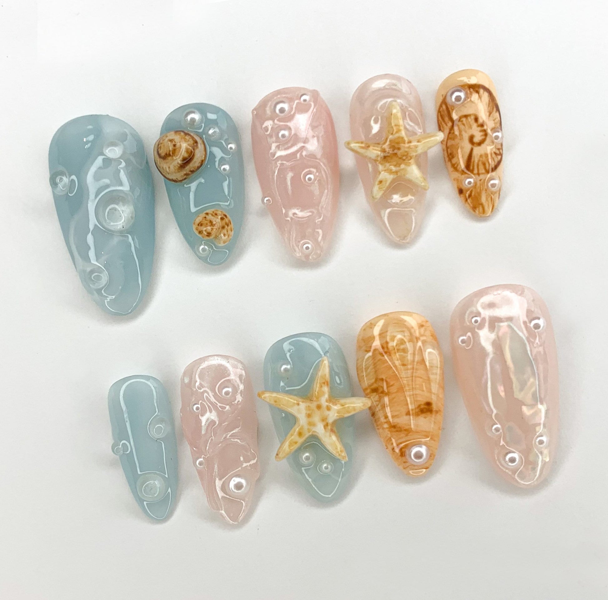 Seashells and Starfish Handmade Press On Nails - Summer Ocean 3D Beach Design S83