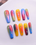 Vibrant Ombre Summer Handmade Press on Nails - Rainbow Aurora Design N76